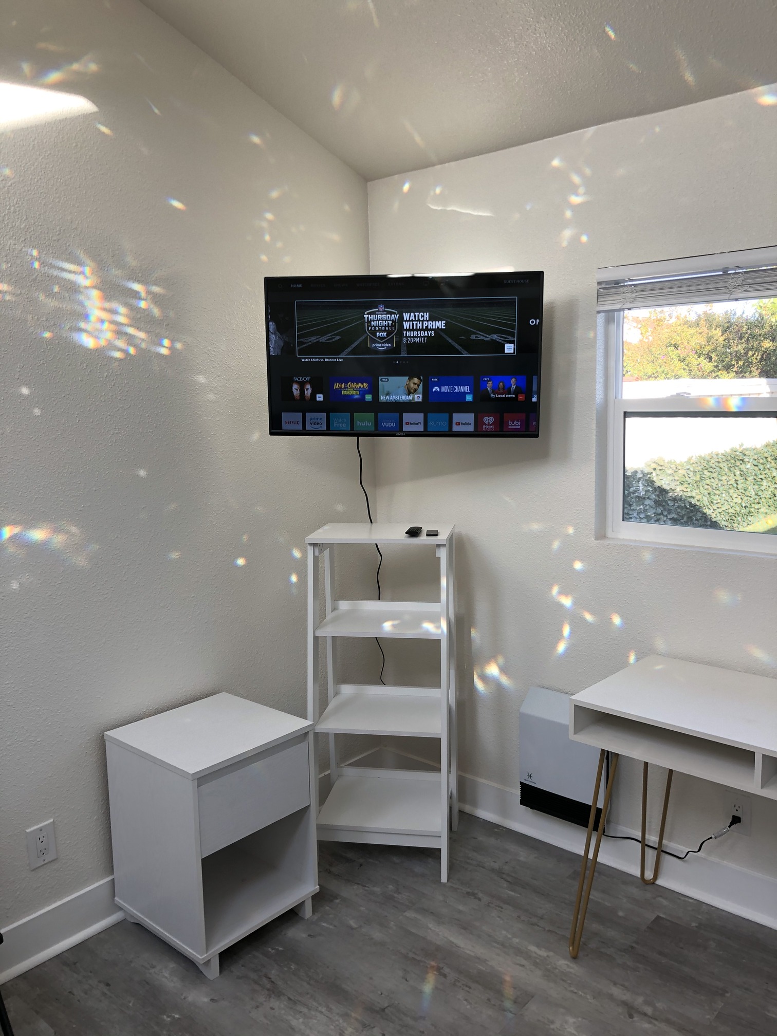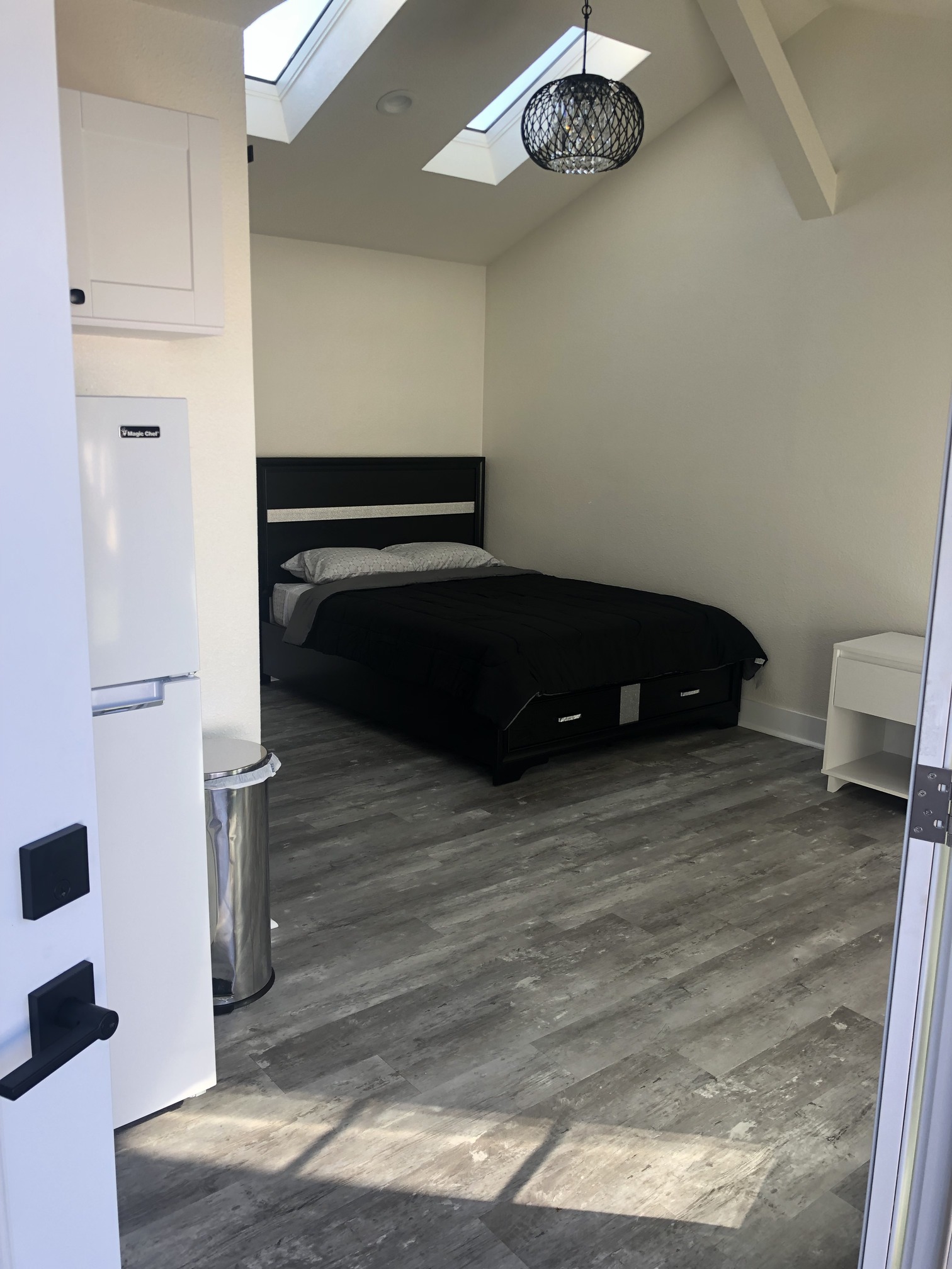 The property was newly built in 2019 with the finest of craftsmanship. The unit has french doors, large restroom with walk-in shower, vaulted ceiling in the main area, small storage area above the kitchen and bathroom, WIFI, gas stove, private entry way and private washer/ dryer. AND FREE LEMONS!!!!!