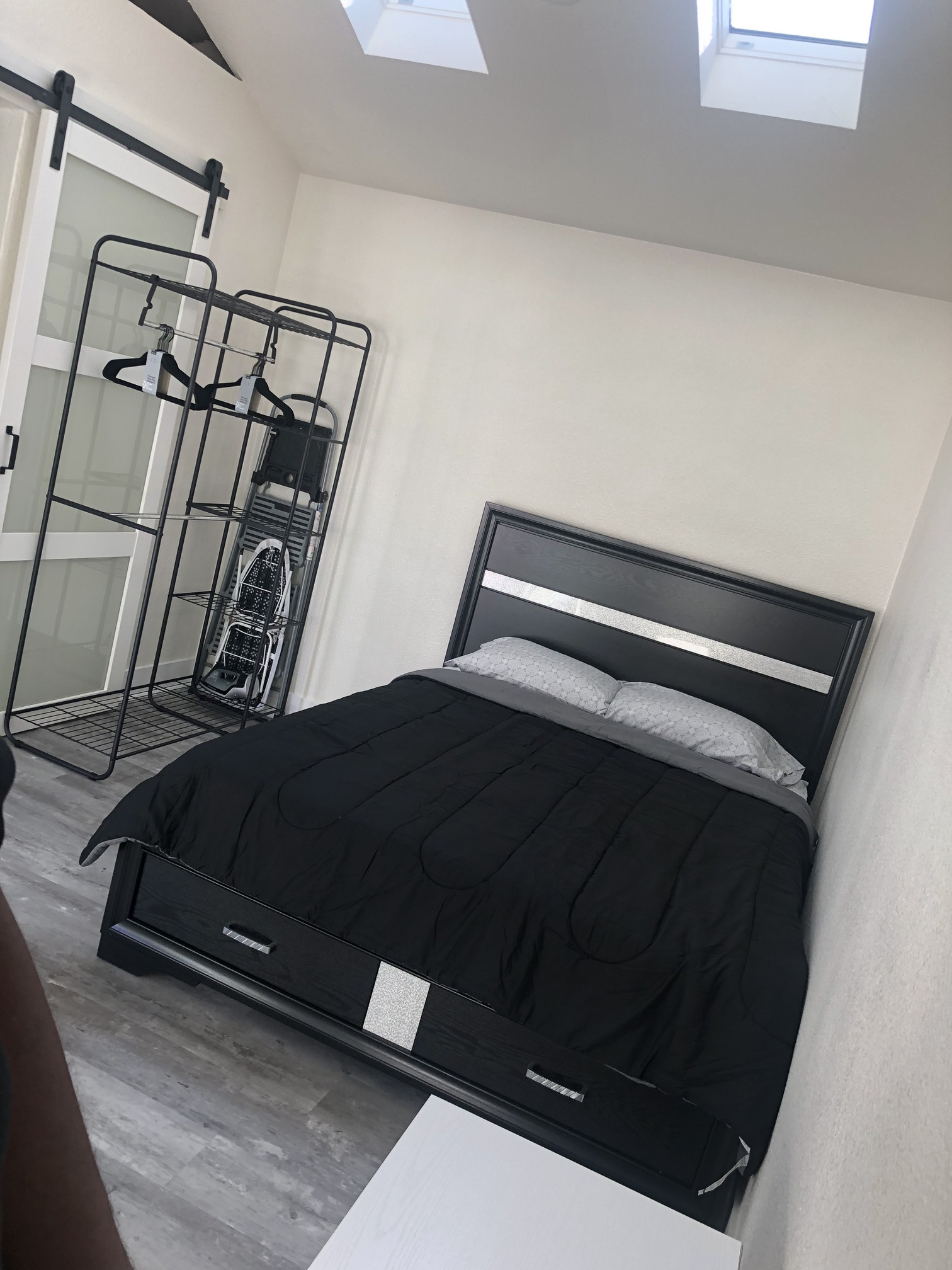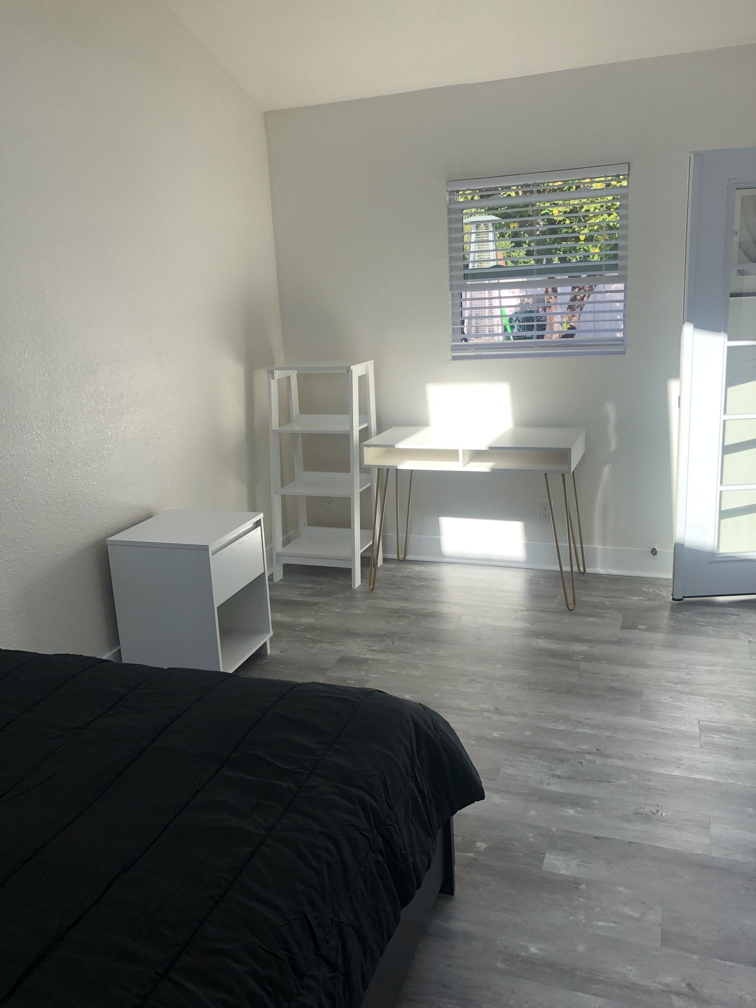 Vaulted ceilings, quiet, secluded in the backyard with private entrance.
