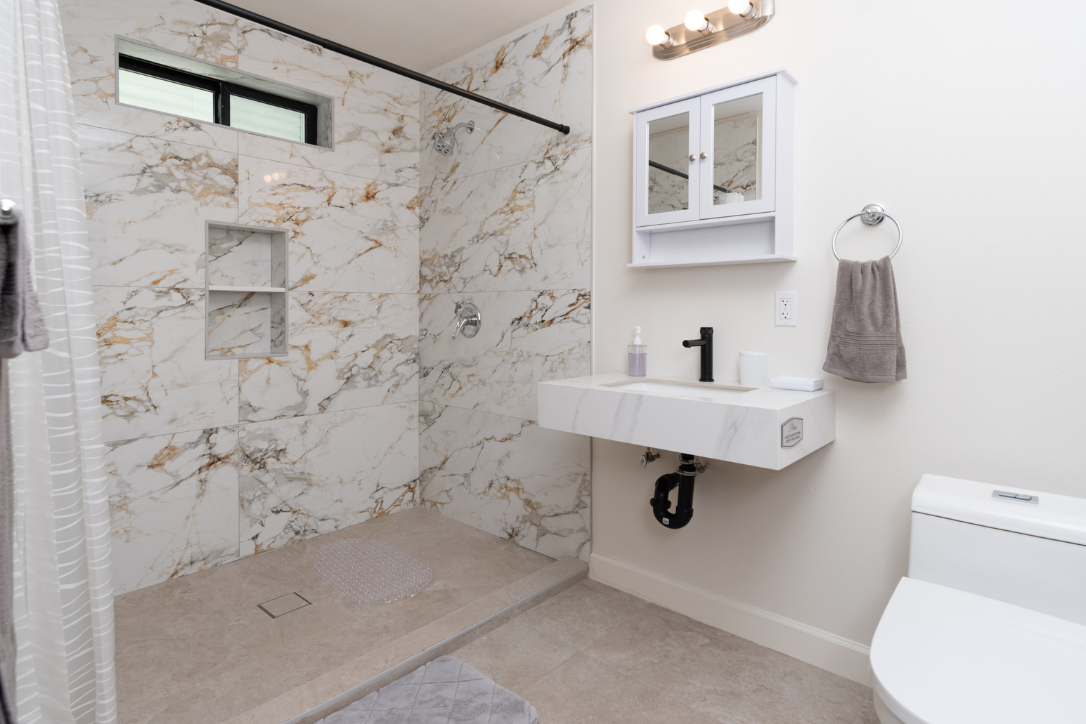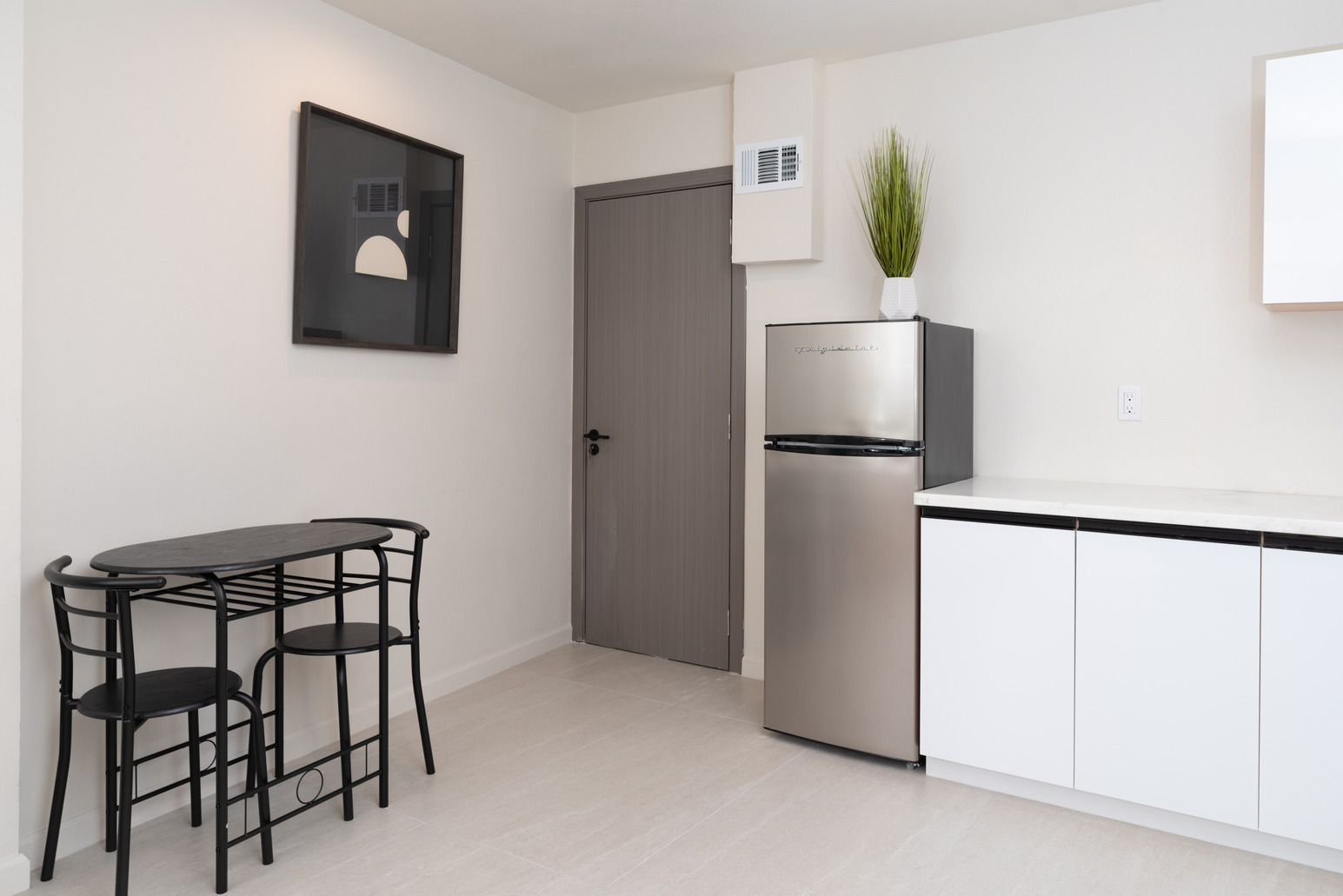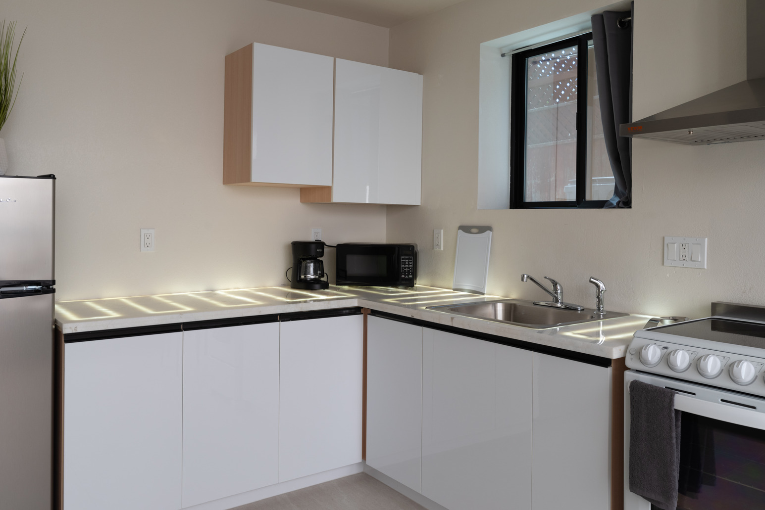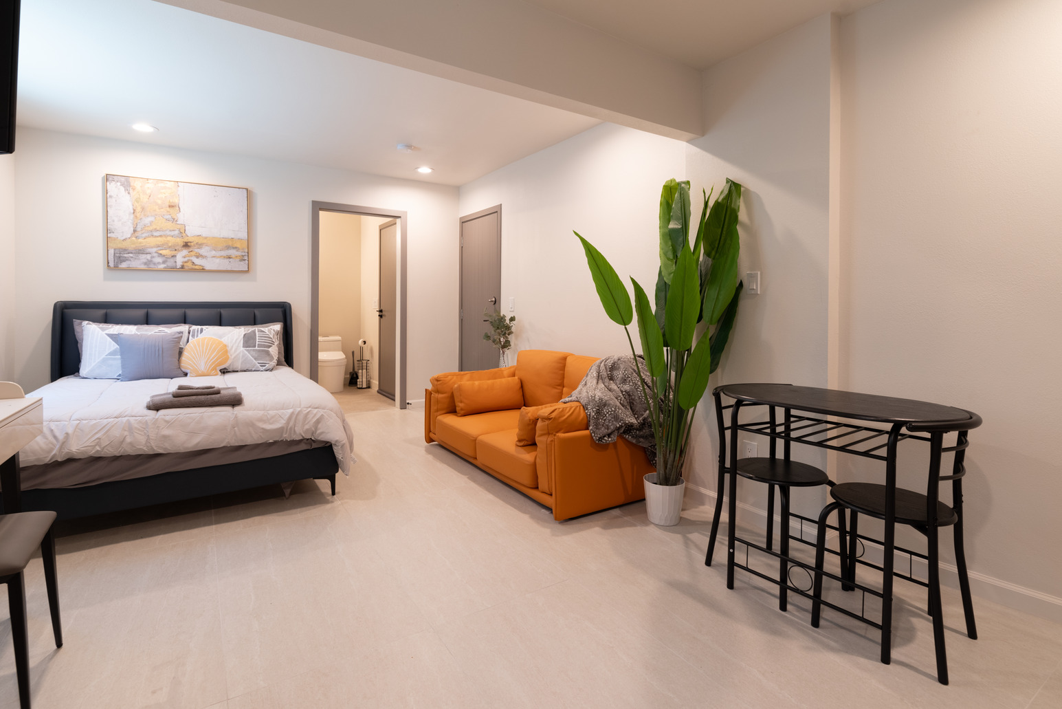 Brand new large 514 sq ft unit with high end furniture. Large private bathroom with full kitchen and amenities. The listed square footage does not include the large restroom with walk-in shower. This unit has free washer and dryer available on site. Enter the unit from a gated and secure area. The backyard is gated and shared.