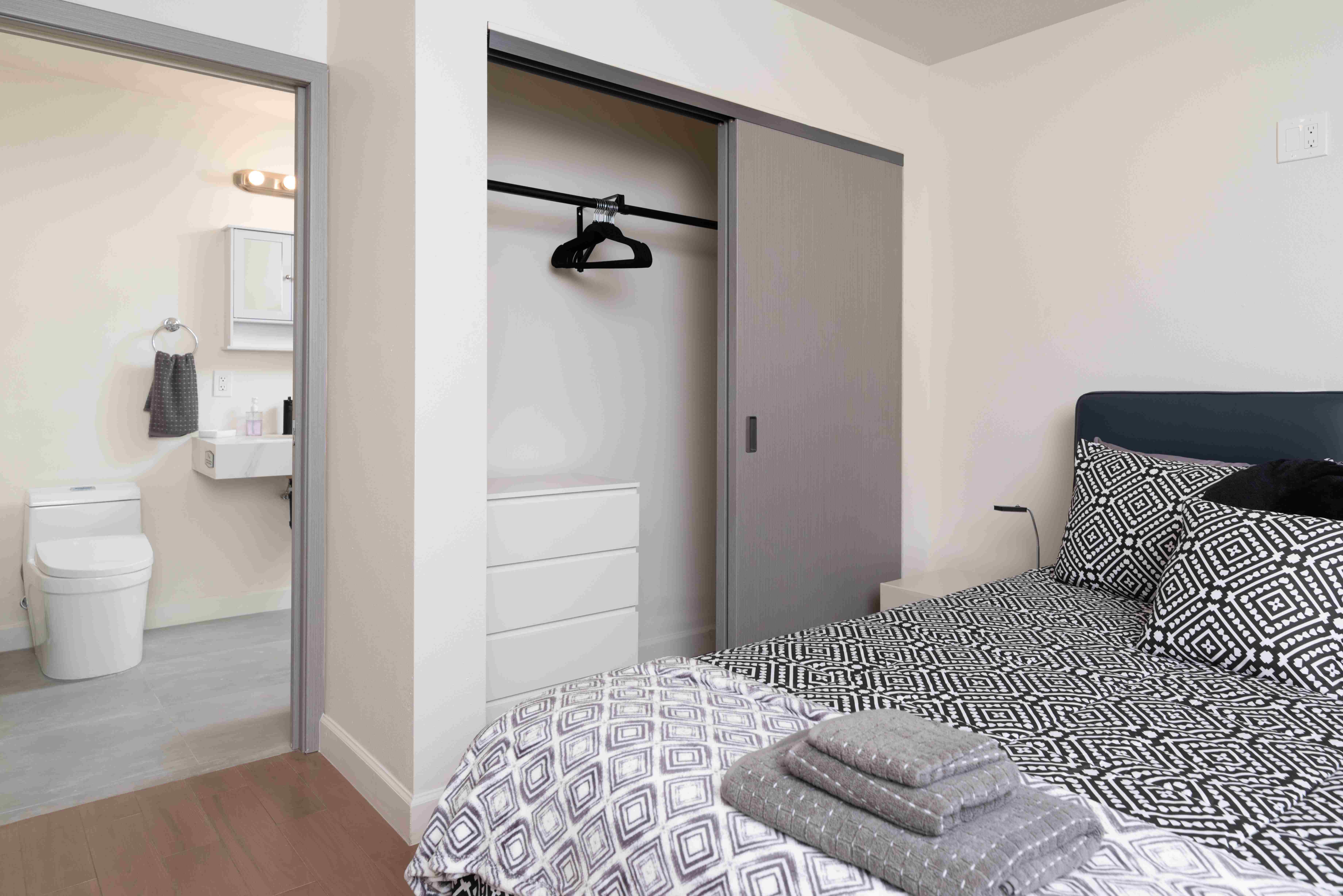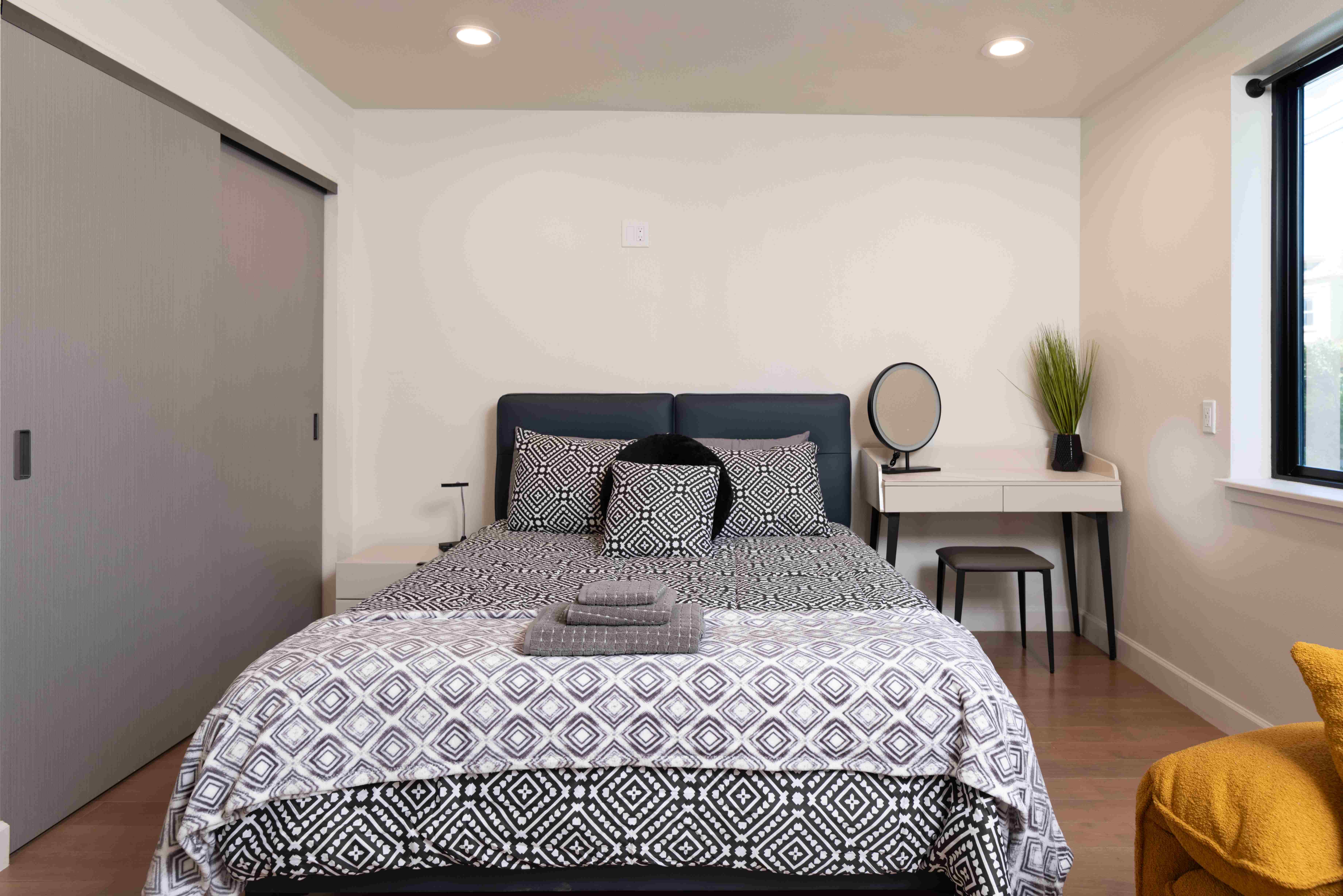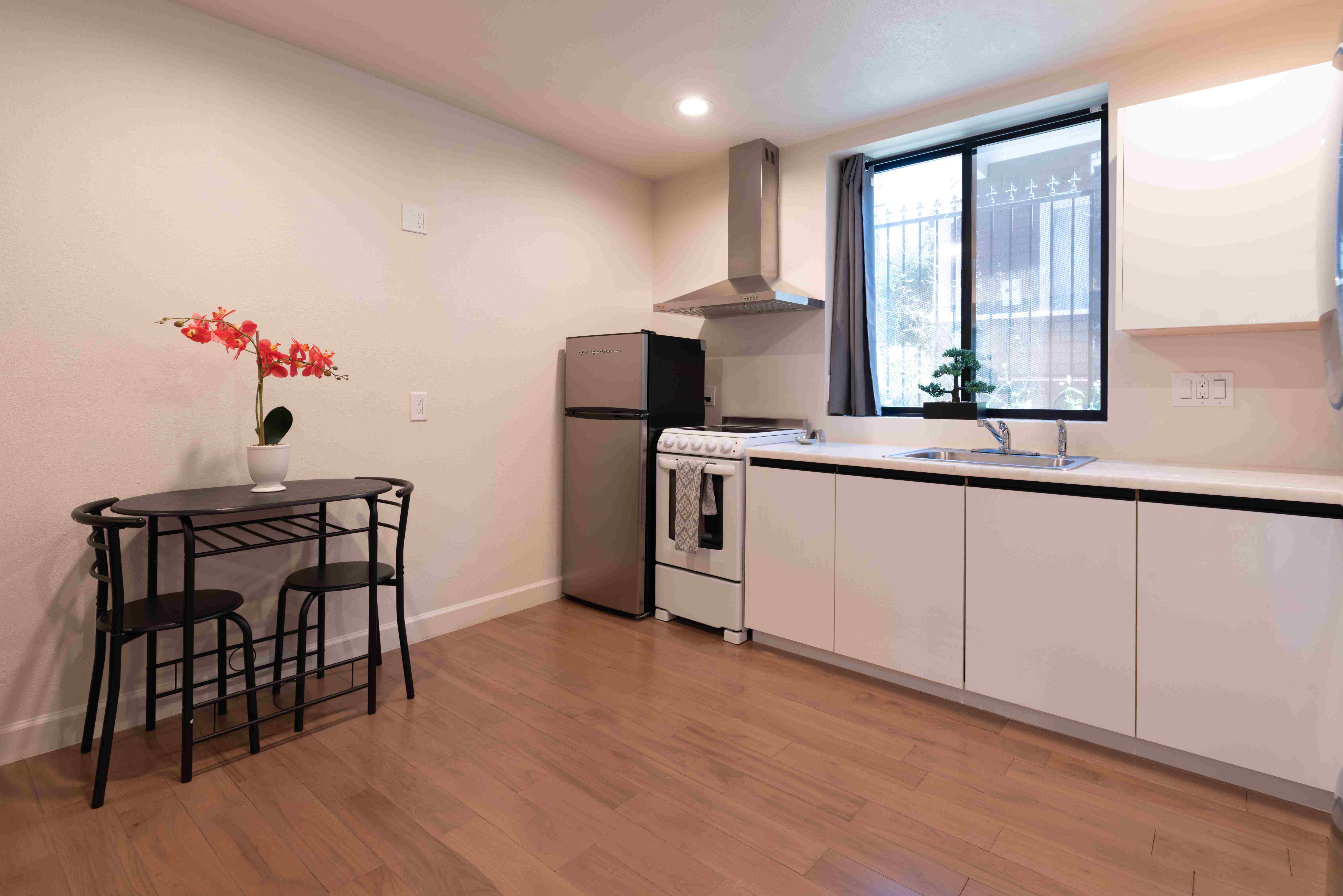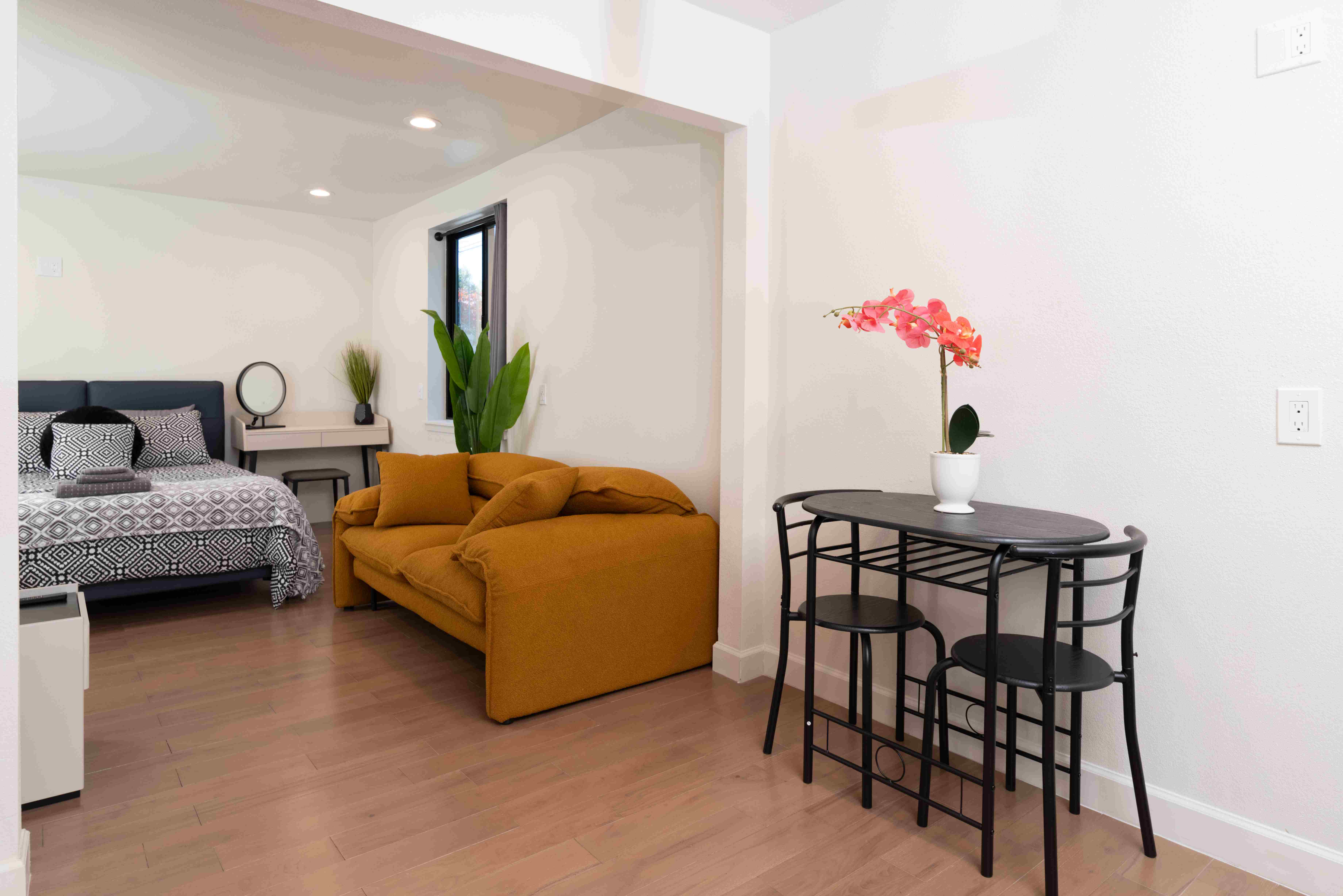 The large studio suite is located in the NOBE neighborhood on the border of Oakland and Berkeley. With ample living space and a large closet there is plenty of room for you to relax when not at work. The bathroom is ADA sized so there is plenty of space. Full kitchen, desk & couch among other great features in this new build.